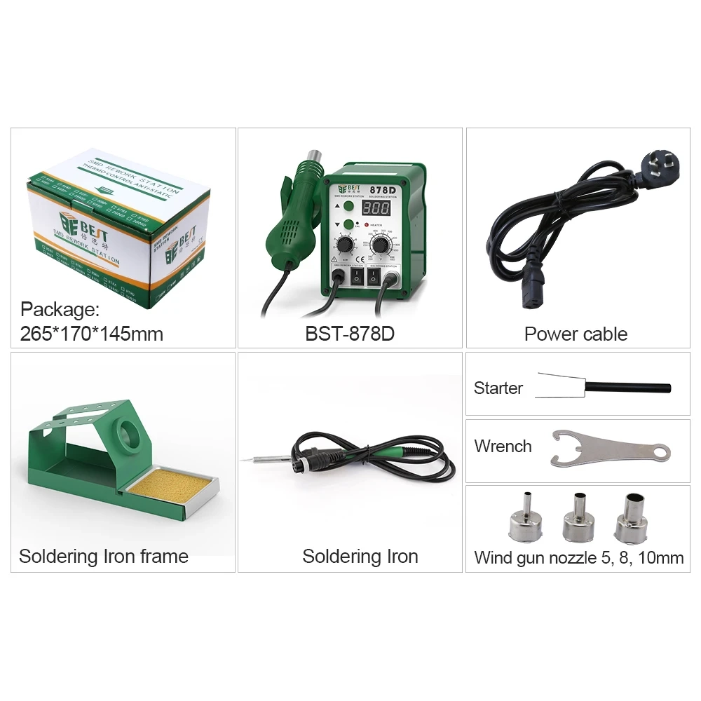 China Hersteller Reparaturwerkzeug Großhändler 2 in 1 Digitalanzeige Bleifreie 110V/220V Heißluftlötstation Lieferant BST-878D