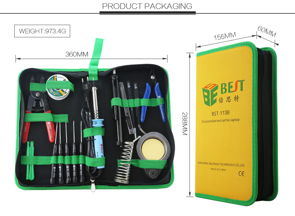BST-113B Ensemble d'outils de réparation à ouverture multifonction 16pcs ensemble de tournevis de réparation de téléphone portable Ensemble d'outils électriques pour fer à souder