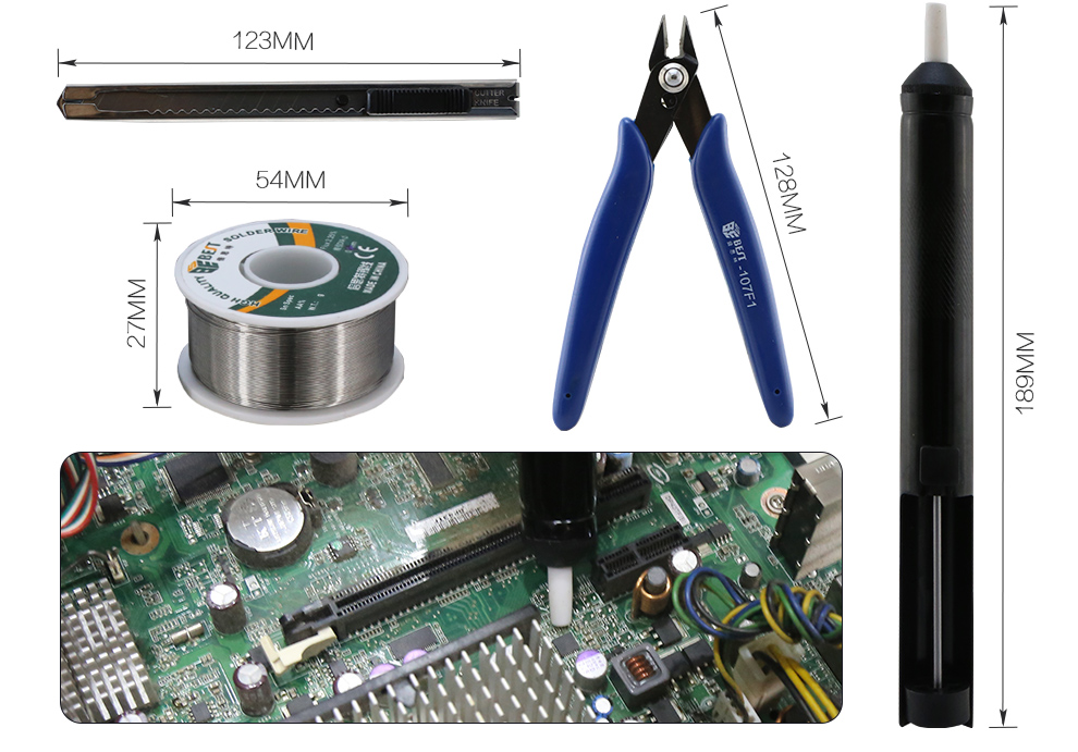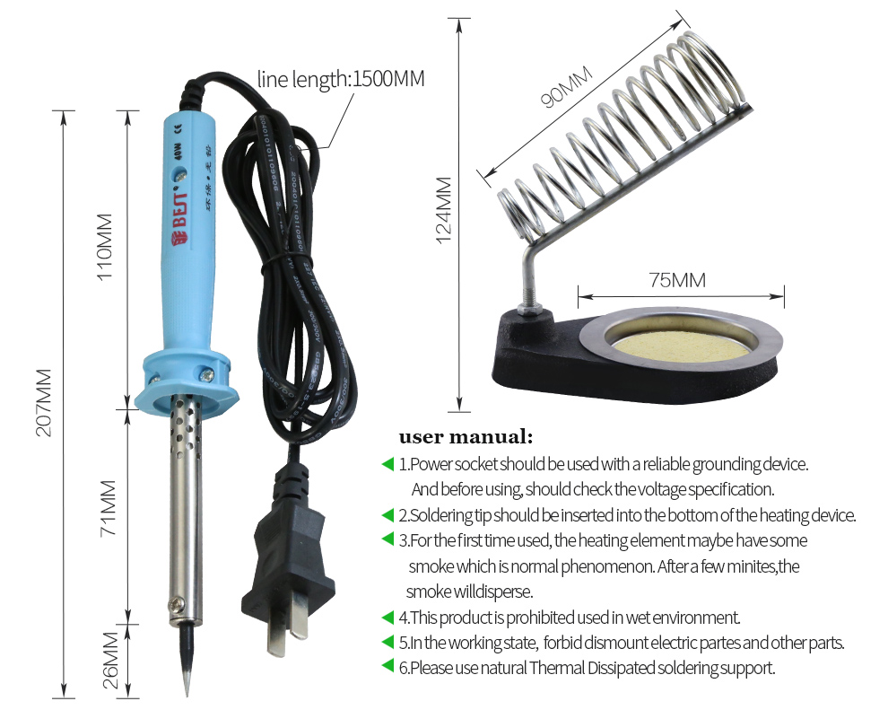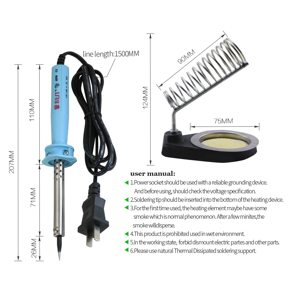 4. Le fer à souder est composé d'un radiateur à haute puissance, et de la chaleur rapide, et le support de fer à souder comprend la réparation.