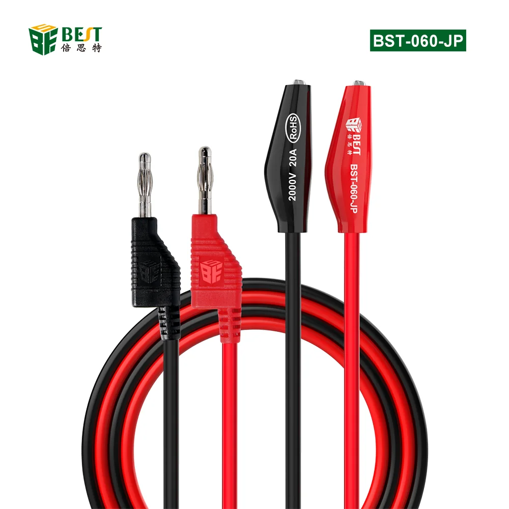 中国工場マルチメータテストリード、積み重ね可能なバナナプラグからワニ口クリップマルチメータリードメーカー、2000V 20Aテストケーブルサプライヤー、BST-060-JP