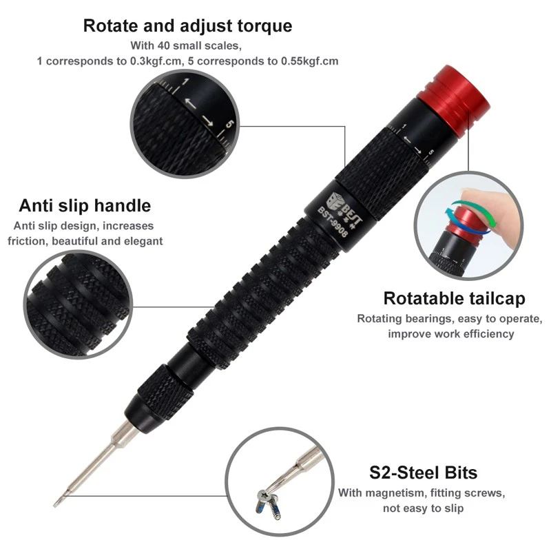 중국 도구 공장 수리 도구 제조업체 조정 가능한 토크 드라이버 세트 휴대 전화 수리 도구 드라이버 BST-9908