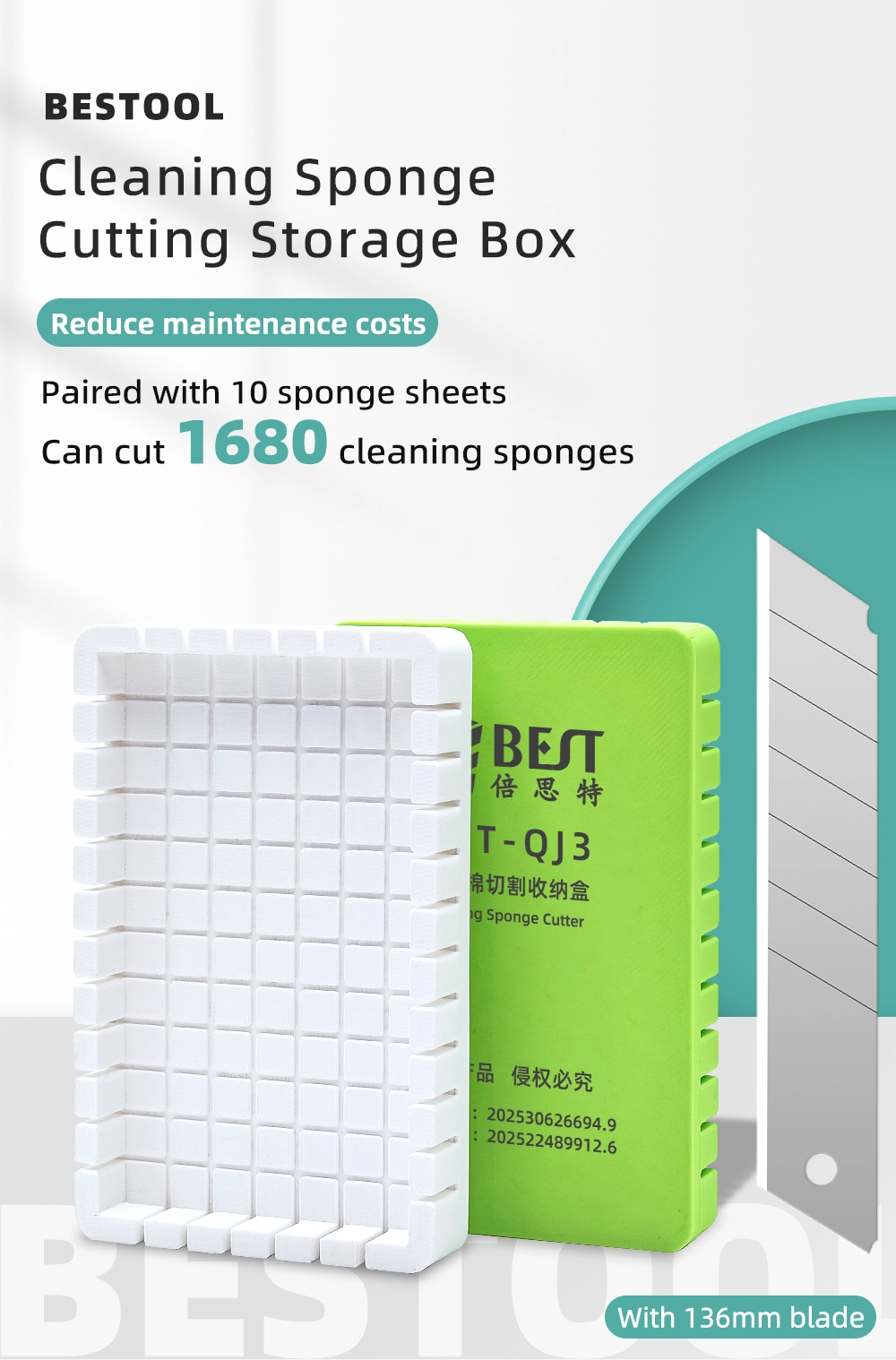 The BST-QJ3 isn’t just a cutter; it’s a practical storage box that keeps sponge blocks tidy and ready to use. Each box comes with 10 sponge sheets, allowing you to create up to 1,680 reusable cleaning sponges—drastically reducing maintenance costs and waste.