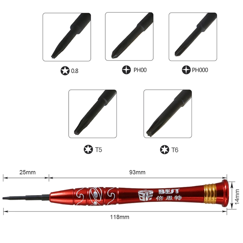 China Factory Precision Repair Tools 5 in 1 Screwdriver Manufacturer for iPhone1/7/7P/8/8P/X with Magnetic Tip BST-668S