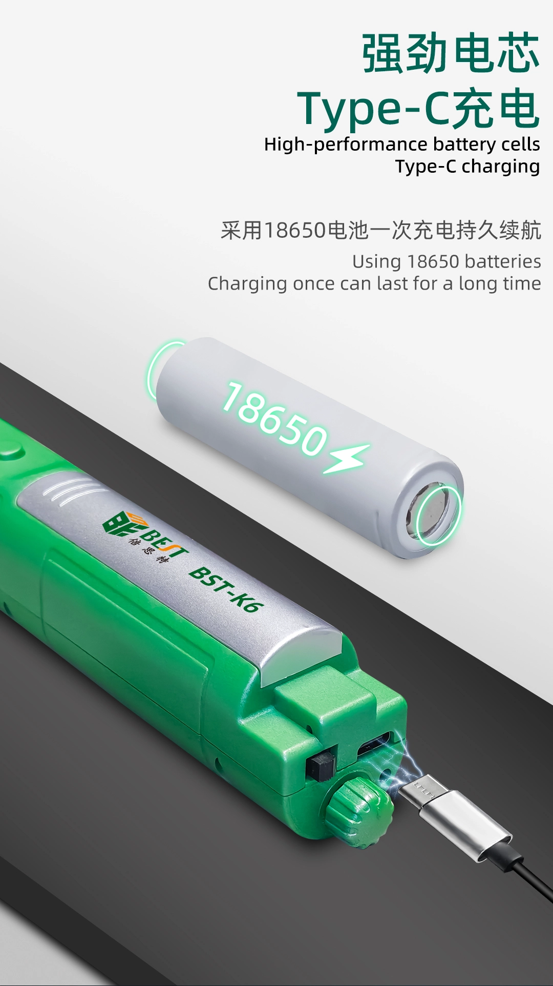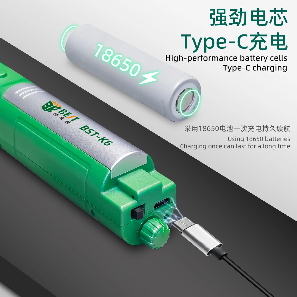 The device features independent buttons for freely switching between clockwise and counterclockwise rotation, making operation smooth and convenient. Adapt to any repair environment with infinite speed adjustment, allowing you to control the rotation speed precisely. Powered by a high-performance 18650 battery cell with Type-C charging, the BST-K6 guarantees long-lasting endurance for continuous work.![]()