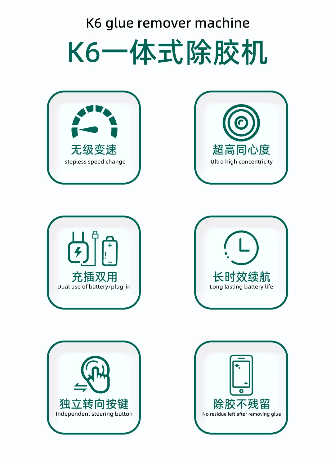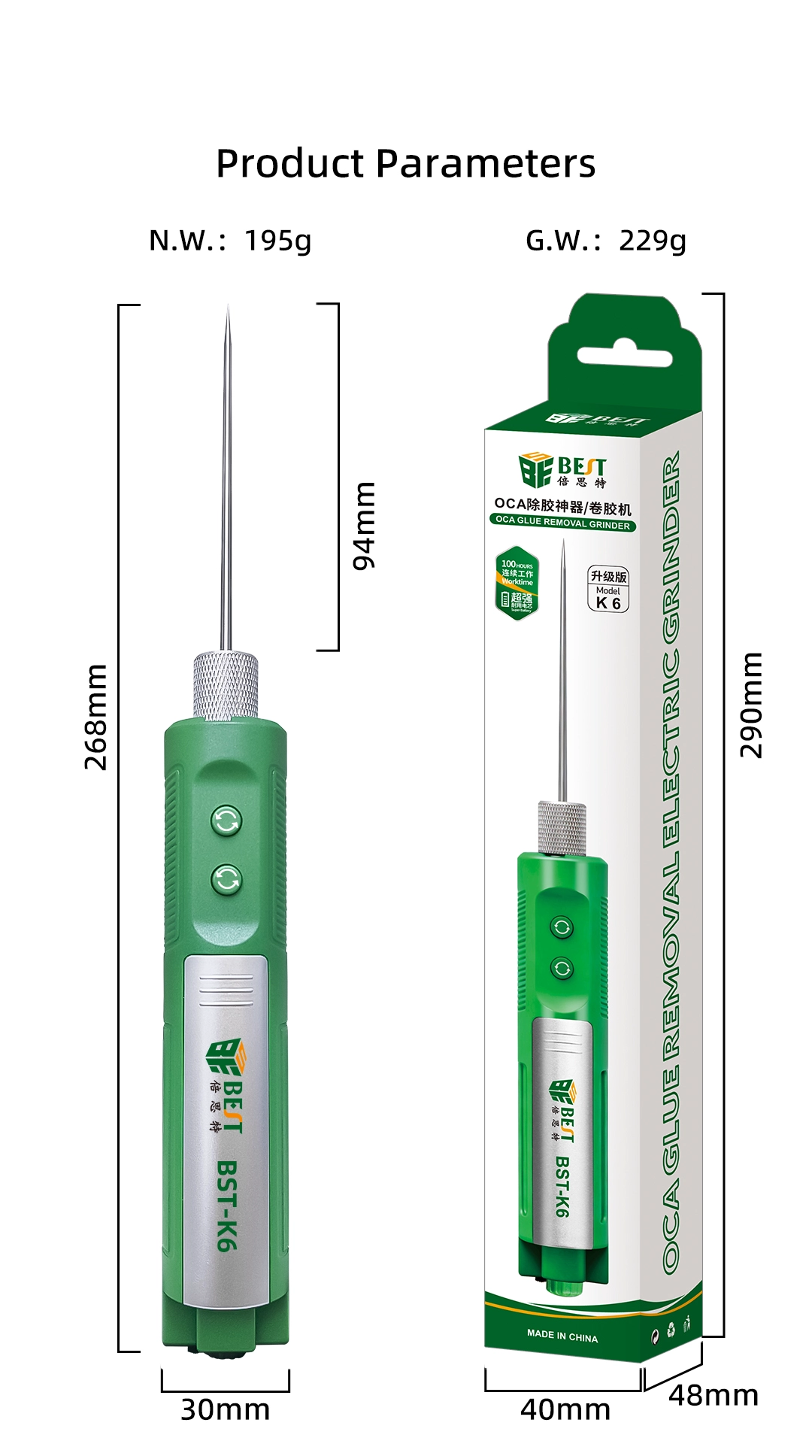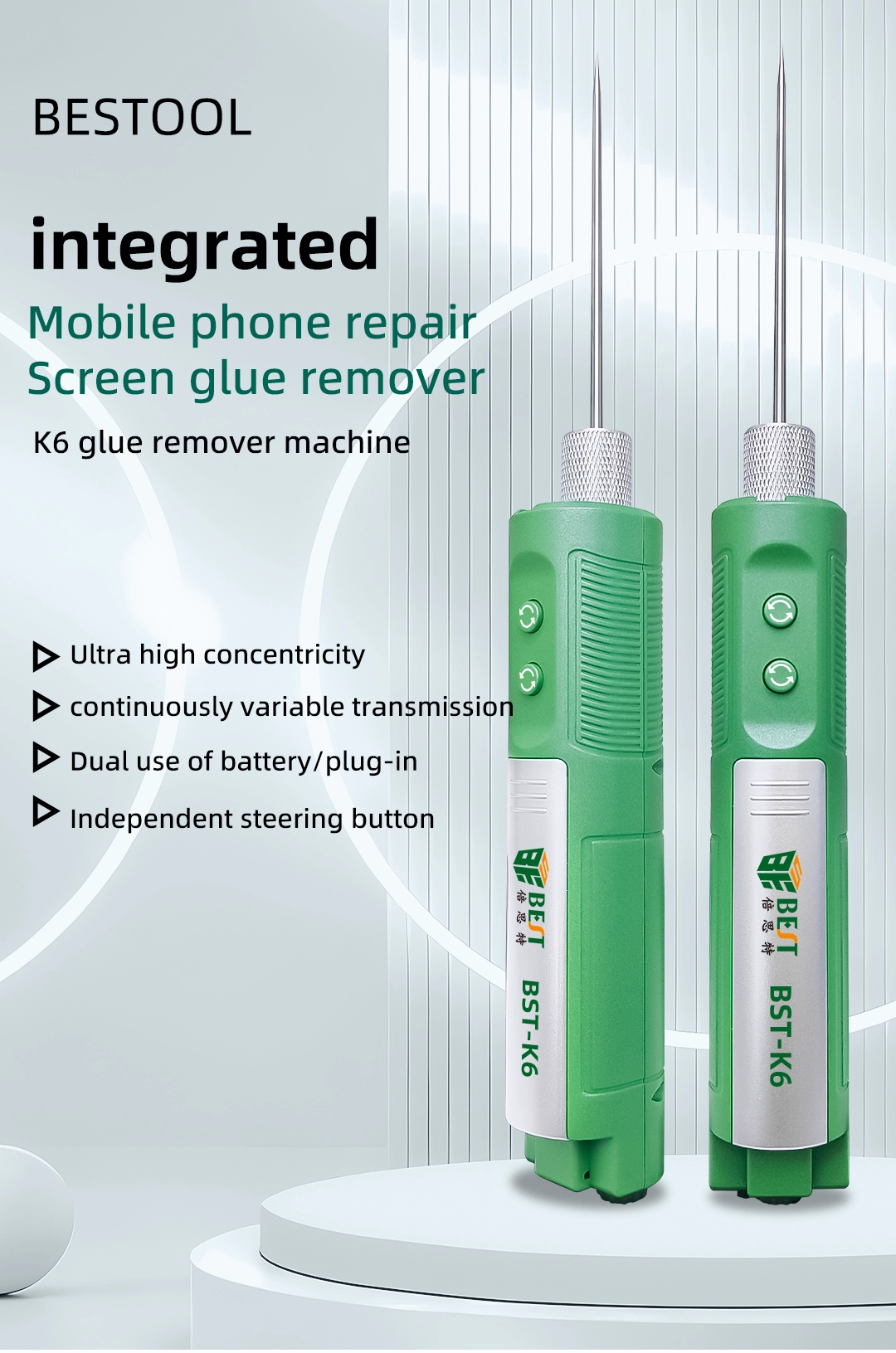 The BST-K6 revolutionizes screen repair with its integrated motor and adhesive remover needle, ensuring a concentric coaxial design for perfect (precision) and minimal operational error. With one-click start, it removes glue without damaging the screen or leaving residue.