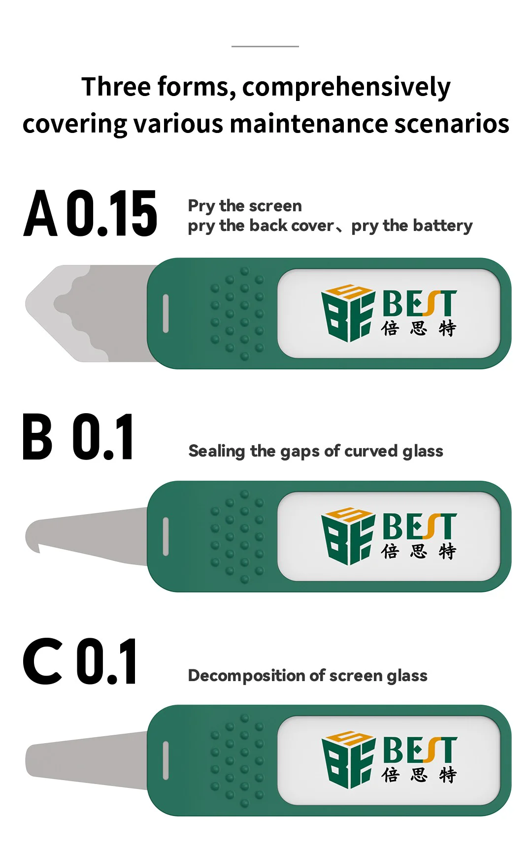 China Factory Screen Disassembly Tool, 3 in 1 Multi-functional Phone Repair Manufacturer Screen Separator Supplier 0.1mm Scraper BST-146