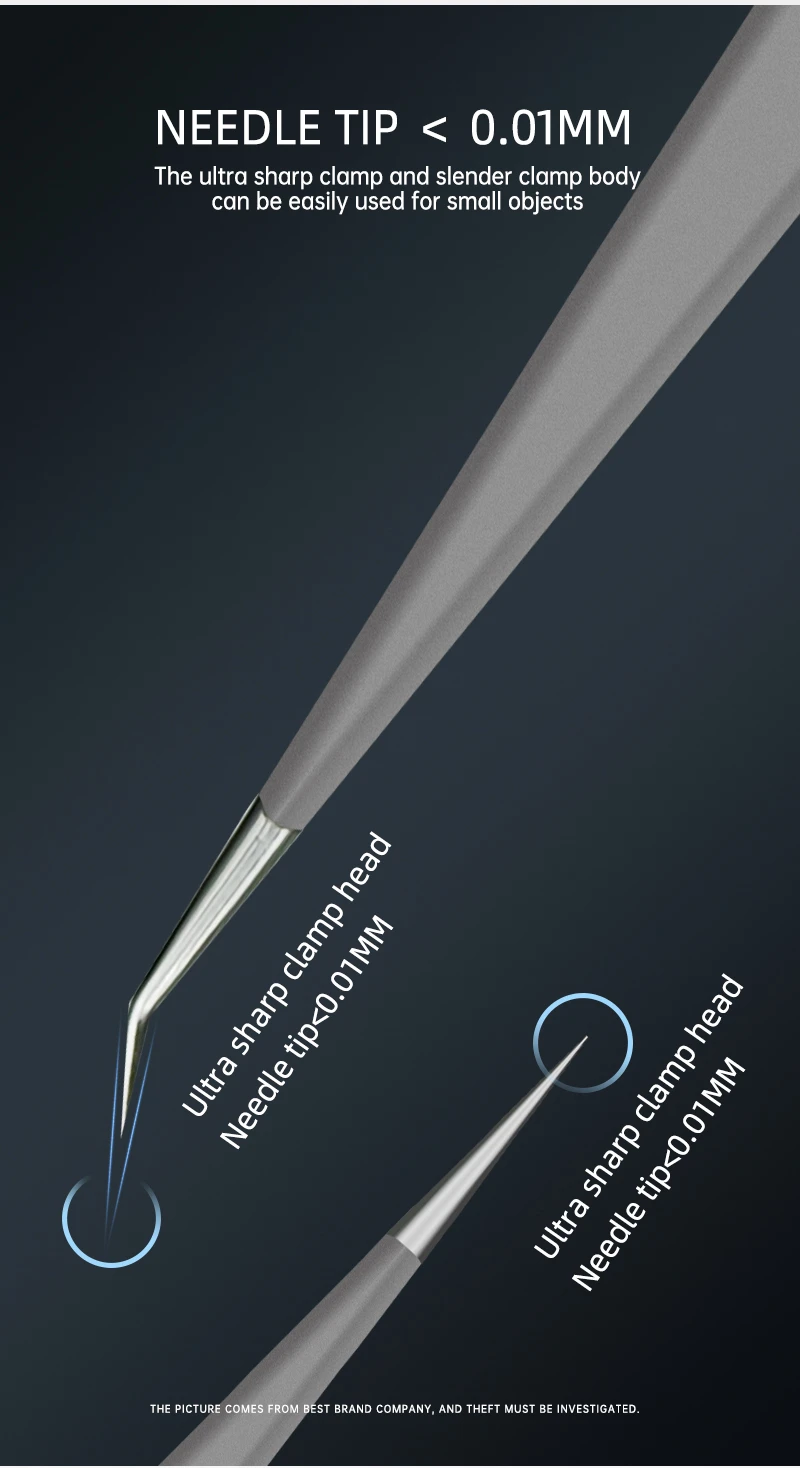 - Feature: Non-magnetic design,Tightly clamped,Fine as a needle
