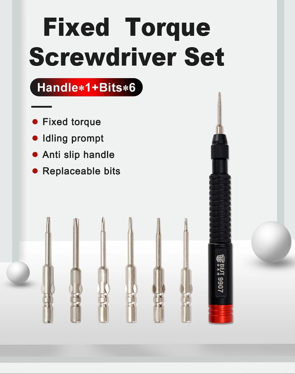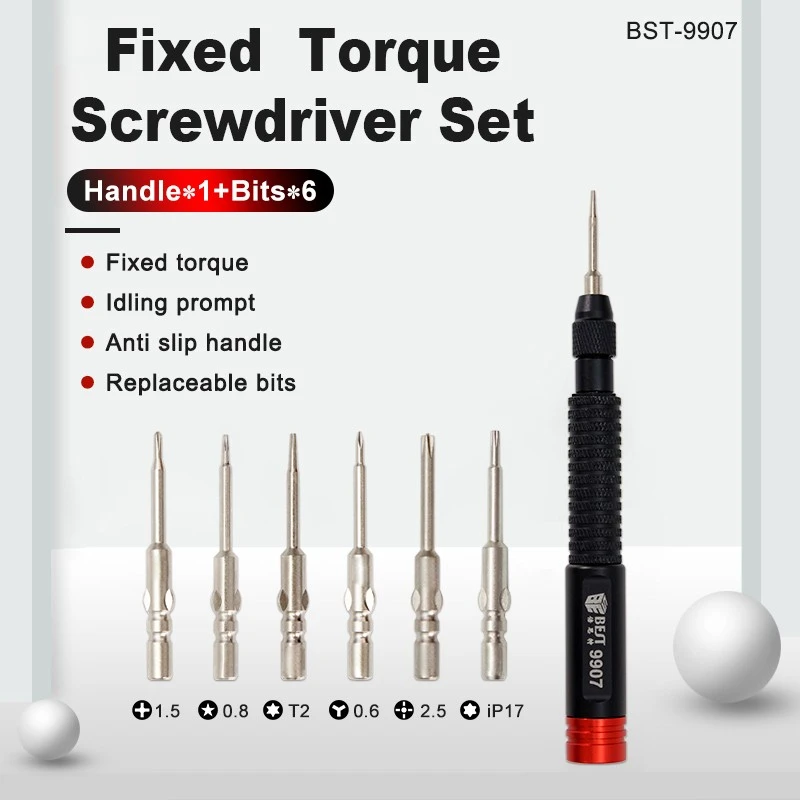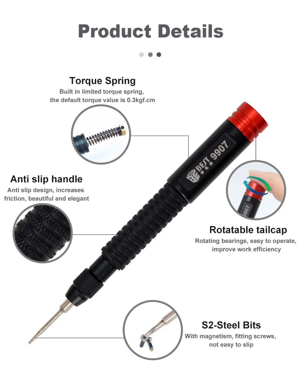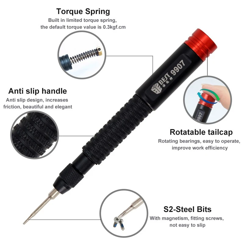 ออกแบบมาสำหรับสมาร์ทโฟน แล็ปท็อป และอุปกรณ์ไมโคร BST-9907 เป็นไขควงจำกัดแรงบิดตัวแรกของโลกที่ ป้องกันความเสียหายอย่างแข็งขัน- เมื่อแรงบิด เกิน 0.3kgf·ซมมัน คลิก ไม่ได้ใช้งาน และหยุด—ช่วยประหยัดส่วนประกอบที่เปราะบางจากการแตกหักหรือเกลียวที่มีราคาแพง